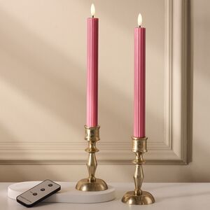 Столовая светодиодная свеча с имитацией пламени Softness 25 см розовая, 2 шт с пультом, таймер, на батарейках