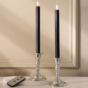 Столовая светодиодная свеча с имитацией пламени Sunrise 25 см черная, 2 шт с пультом, таймер, на батарейках
