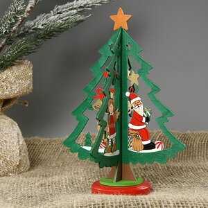 Миниатюрная красавица, не нуждающаяся в дополнительном декоре, – настольная елочка Ягодка от голландской компании Kaemingk. Слегка заснеженные иголочки из лески и ПВХ дополнены шишками и красными ягодками. Установлена пестрая ель на подставку, спрятанную в холщевом мешочке.