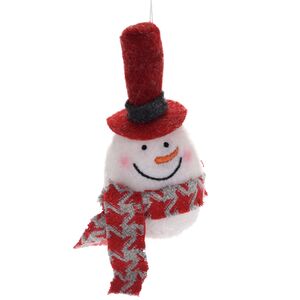 Елочная игрушка Снеговик в красном цилиндре 16 см, подвеска