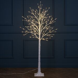 Светодиодное дерево Березка Balbeggi заснеженное 150 см, 400 теплых белых LED ламп, IP44