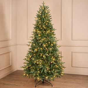 Искусственная елка с гирляндой Виндзор 167 см в деревянном кашпо, 200 теплых белых ламп, ЛИТАЯ + ПВХ