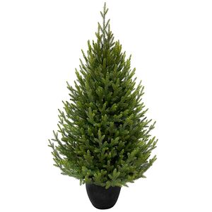 Искусственная елка с лампочками Norway 120 см заснеженная в кашпо, 162 теплых белых LED, ЛИТАЯ + ПВХ