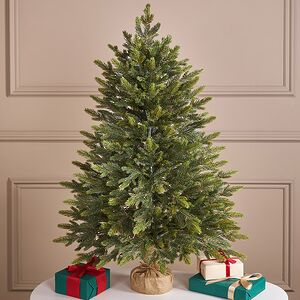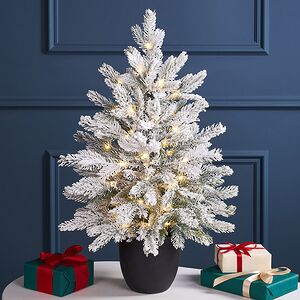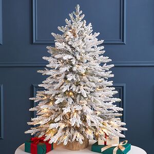 Искусственная елка с лампочками Norway 120 см заснеженная в кашпо, 162 теплых белых LED, ЛИТАЯ + ПВХ