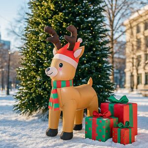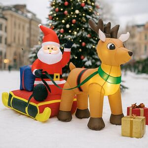 Новогодние пневмофигуры просты в установке, удобны в хранении, долговечны, очень нарядны. Они оснащены компрессором для постоянного поддува воздухом, вследствие чего не боятся небольших проколов.