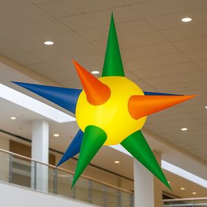 Пневмофигуры изготовлены из прочного износостойкого материала, могут устанавливаться и в помещении, и на улице. Обычно внутри встроены лампочки, благодаря чему в темноте фигура выглядит еще более привлекательно и празднично.
