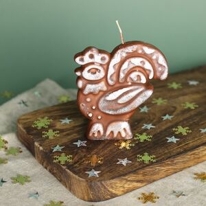 - Фигурные свечи в форме заиндевевших шишек, зимних зверушек, новогодних подарков;