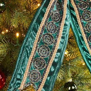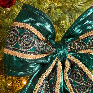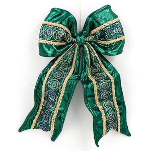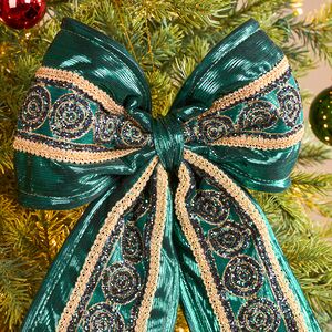 Вы знали, что Великий и Ужасный Гудвин использовал именно этот бант для декора тронного зала, где исполнял мечты? Хорошо, ребята из Winter Deco подсуетились, когда Элли стукнула каблучками и ленту с завораживающими изумрудными переливами и золотыми дорожками вихрем закинуло в наш мир! Отличный шанс прицепить новогодний бант на елку и загадать ему парочку желаний: вдруг волшебство еще действует?