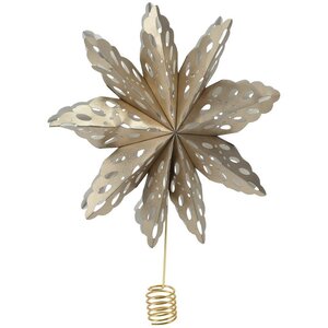 Если вам надоела традиционная звезда на верхушке ели, то дизайнеры бренда Koopman вас прекрасно понимают: однообразие - это скучно! А что, если вместо звезды крону деревца украсит макушка на елку Hannah? Нейтральный бежевый оттенок, объем и перфорация, делающая украшение воздушным и оригинальным - красота под стать вашей пушистой лесной прелестнице! Верхушка на ель создана из бумаги, что является одним из плюсов: под ее легким весом не согнется даже самая хлипкая крона.