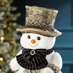 Выбирая костюм для маскарада, декоративный Снеговик Флокен вдохновлялся "Котом в сапогах". Правда, от костюма главного героя пришлось отказаться: опытным путем выяснилось, что для ношения обуви фигурка Снеговика не приспособлена. Зато Маркиз Карабас подошел идеально! В складчатом жабо, кружевах и цилиндре Флокен выглядит истинным дворянином и немножко важничает перед новогодними фигурами без титулов.