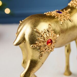 Новогодняя статуэтка намерено создана так, чтобы играть первую скрипку в интерьере. Бедолаги, которые угодят в одну композицию с Франсуа, обречены на вечный второй план! Так что, если собираетесь поставить Оленя под елку, для Деда Мороза лучше выбрать другое местечко, иначе волшебника попросту никто не заметит. Зато комната с появлением декоративной фигурки обзаведется собственным золотым солнышком!