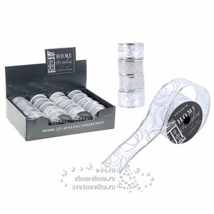 Эта белая ленточка с поверхностью, украшенной блестящими серебряными рисунками, смотрится необычайно нежно. Такой декор будет отлично дополнять упаковку в любой цветовой гамме. С ее помощью можно оформить подарок в изящном и элегантном или милом и романтичном стиле. А банты, сделанные из этой ленты, станут превосходным украшением для новогодней елки. Лента армирована тонкой проволокой, поэтому вы без труда сможете придать ей нужную вам форму.