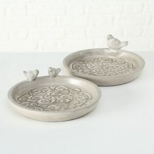 Феллида - садовая декоративная кормушка для птиц, которая станет не только любимым местом пташек, но и стильным украшением, подчеркивающим эстетику летнего сада. Узорчатая тарелочка в нежно-сером окрасе идеально впишется в зеленый ландшафт территории: поставьте ее на пенек или каменную горку, чтобы создать атмосферу райского местечка, наполненного птичьими трелями!