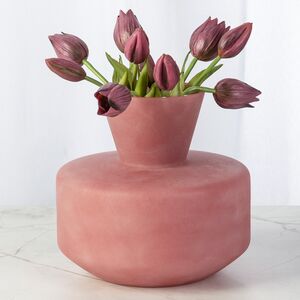 Удивительная ваза для декора Элебрун восхищает своим необычным дизайном и смелостью форм. Хрупкое стекло нежного оттенка заката с тончайшими прожилками создает полную иллюзию, что аксессуар выполнен из прекрасного розового кварца. Столь изящный предмет интерьера отлично впишется в обстановку спальни или гостиной, наполнив помещение особым уютом и теплом. Невысокая ваза идеально подойдет для размещения миниатюрных букетиков или низких композиций из сухоцветов.