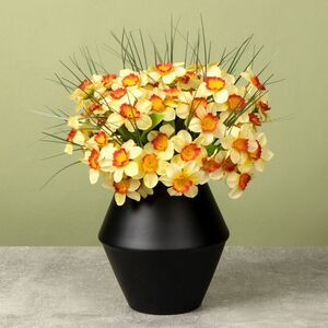Металлическая ваза Морена - триумф безупречного вкуса, помноженный на смелую оригинальность. Строгость и лаконичность форм удивительно гармонируют с однотонной расцветкой, превращая аксессуар в универсальный предмет декора, который с легкостью впишется в любой интерьер. Невысокая ваза прекрасно подойдет в качестве обрамления для низких пышных букетов, но и в сольном исполнении она будет смотреться не менее очаровательно и загадочно.