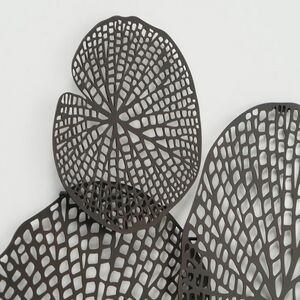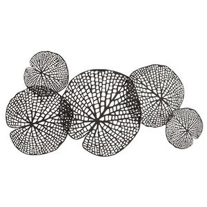Внесите в интерьер комнаты смелый дизайнерский штрих, повесив на стену панно из металла Puesto Tejuela! Черные листья кувшинок создадут эффектный контраст на светлой поверхности, а перфорация привнесет ощущение воздушности и легкости. Это отличный вариант декора для любого помещения, нуждающегося в оригинальной акцентной детали.