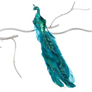 Даже сказочная Жар-Птица не сравнима с роскошным украшением Павлином La Viconte от дизайнеров Goodwill! Пышный хвост, образованный из нескольких слоев натуральных перьев, сверкающий декор и насыщенный бирюзовый оттенок с сияющим отливом - столь фантастический образ экзотической птицы идеально впишется в новогоднюю атмосферу волшебства! Закрепите елочную игрушку Павлина на ветке с помощью клипсы - птица станет изюминкой новогоднего декора!