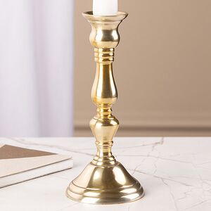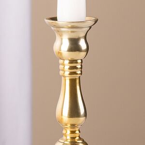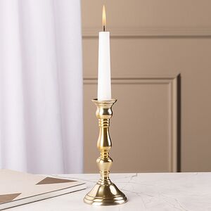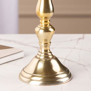 Только представьте, какой изысканной и элегантной обстановку в вашем доме сможет сделать этот подсвечник для высокой свечи! Его можно разместить как на праздничном столе, так и просто на полочке или журнальном столике. Роскошный золотистый оттенок и изящная форма изделия внесут особую эстетику в интерьер. Таким металлическим подсвечником вы будете любоваться бесконечно, особенно в тот момент, когда его дополнит горящая свеча.