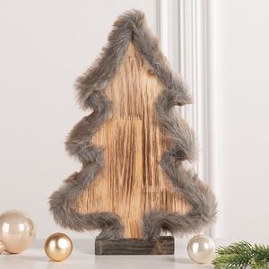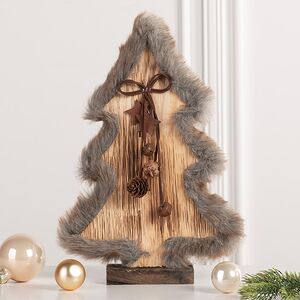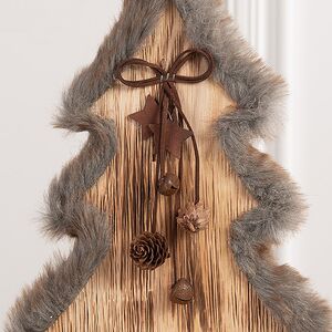 Деревянная елочка - прекрасное решение для декора интерьера. Дизайн пленяет с первого взгляда и текстурой дерева, и отделкой из серого меха, и декоративными шнурками, завязанными в романтичный бантик. Такая елочка из дерева отлично будет смотреться на праздничном столе, подоконнике или на камине. Ее можно включить в новогоднюю композицию или использовать в качестве отдельного элемента декора.