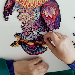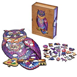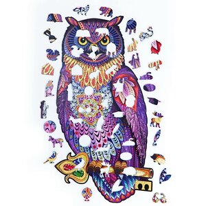 Фигурный деревянный пазл Филин - возможность расслабиться после суетливого дня и провести время за умиротворяющим процессом, тренирующим внимательность, моторику и мышление. Пазл сделан из дерева в стилистике арт-картины, при этом дизайнеры использовали преимущественно оттенки фиолетового: такой дизайн и цветовое решение моментально настраивают на спокойный лад, дарят ощущение гармонии и позволяют погрузиться в процесс.