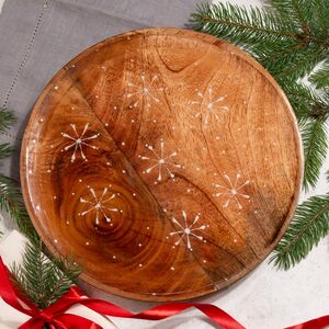 Зима - это не только снежинки за окном, но и неповторимая атмосфера уюта, которые окутывает наш дом словно теплое пушистое одеяло. Ну а помочь в ее создании помогают вкусные блюда, которые тоже нуждаются в эффектной сервировке. Только представьте, как аппетитно и эстетично будет выглядеть выпечка на роскошном сервировочном подносе! Он выполнен из натурального дерева и украшен милыми снежинками - то, что нужно для создания домашнего уюта.
