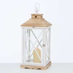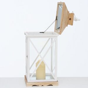 Подсвечник-фонарь Квентин выглядит современно и при этом сохраняет атмосферу старинных ретро-фонарей. Интересное сочетание белого цвета и естественного древесного оттенка делает его выделяющейся деталью интерьера, которая интересно смотрится и в соло-варианте, и в соседстве со статуэтками, цветами, постерами и прочими украшениями. Крышка и стеклянное окошко фонарика легко открываются и закрываются на замочек, благодаря чему вы легко сможете поставить внутрь свечу, а когда потребуется, затушить ее фитилек. Это практичный и стильный вариант декора для будней и праздников!