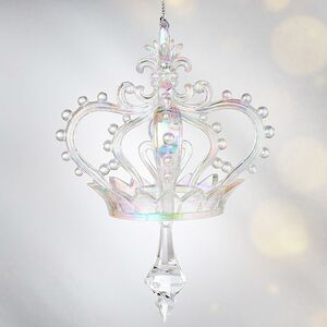 Елочное украшение в форме королевской регалии будет замечательно смотреться среди хвойных веточек и подарит лесной гостье тонкое очарование. Миниатюрная корона, играющая красивыми перламутровыми переливами, будто действительно принадлежала благородной принцессе из сказочной ледяной страны. Игрушка дополнена фигурной прозрачной подвеской, которая добавляет ей прелести. Повесьте корону на елку, она выгодно подчеркнет утонченность нарядного деревца.
