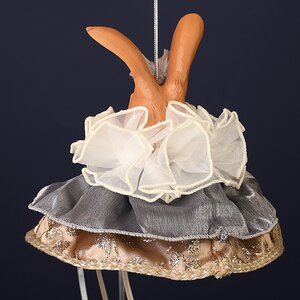 Да-да, нечего дразниться… Всякому понятно, на елку подвеску Пьетро собирала любимая бабушка. Ух и навертела платков да шалей, чтобы внучок не простудился! Малыш только что не тонет в ворохе блестящих складок, да то и дело пытается не споткнуться об ленты. Зато бабуля спокойна, и незамеченным на новогоднем балу он точно не останется. А елочные игрушки похихикают и угомонятся.