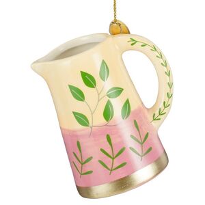 На кухне леди Элизабет всегда есть место одному чудесному кувшину. В нем хозяйка подает самые любимые напитки своей семьи -воду с лимонным соком, морс, молоко. Кувшин выполнен в бежево-золотистых тонах и дополнен изящными зелеными веточками и листочками. На самом деле, конечно, это не настоящий стеклянный сосуд, а его уменьшенная компания -оригинальная подвеска на елку, которая точно сможет преобразить ваше новогоднее деревце.