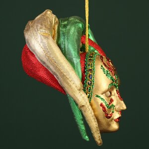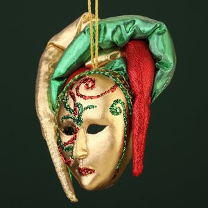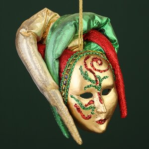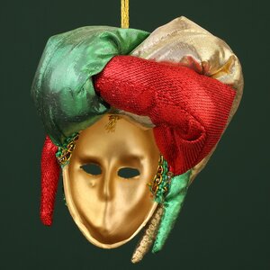Елочная подвеска Маска раскроет все секреты карнавального веселья, но не откроет главную тайну: кто же под ней таится? Судя по скрученным в пышный тюрбан разноцветным колпакам, за маской прячется веселый шут. Однако золотая основа изделия намекает на то, что под карнавальной личиной притаился сказочный принц, решивший разыграть свою свиту в новогоднюю ночь! Повесьте елочную игрушку Маску на елку - а вдруг наш герой однажды покажется?