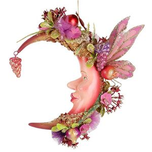 В Стране Фей любой герой обретает сказочный вид, под стать ее крылатым обитательницам! Даже Месяц Заката, и без того симпатичное елочное украшение благодаря розовому румянцу и мудрому взору глаз, преобразился до такой степени, что его теперь видно в небе даже в пасмурную погоду. А все благодаря старательным Феечкам, что украсили его рога гроздью винограда, а серп облачили во фрукты и цветы. Елочная игрушка Месяц Заката теперь точно цветущая летняя клумба - такая же яркая и жизнерадостная!