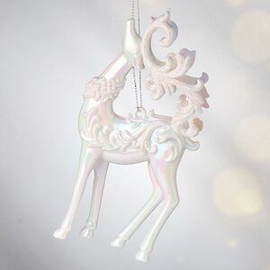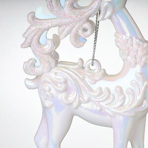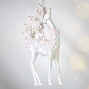 Уж наверно, моделью для новогодней подвески служили не олени Санты. Попробуй-ка потаскай упряжку с упитанным волшебником с такими стройными ножками и шеей, грациозно запрокидывающейся под весом роскошных рогов! Нет, для игрушки на елку выбрали кого-то изящнее. Может, это любимец Вьюги, на котором она выезжает в поле побуянить, завивая вихрь за вихрем? Вот откуда взялись завитки на боках елочного украшения!