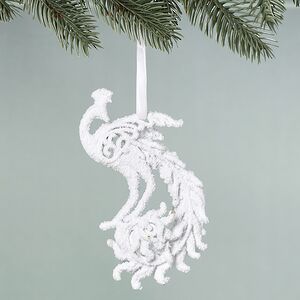 Павлин Хорас - словно морозный привет, оставленной утром на окне! Сложно поверить, что птица сделана из акрила, ведь все в ее образе - от пышного, как снежинка, хвоста, до покрытия белым инеем - чудится искусной работой зимы. Повесьте елочную игрушку Павлина на заснеженную ель, чтобы подчеркнуть нежность, хрупкость и изящество ее зимнего облика.