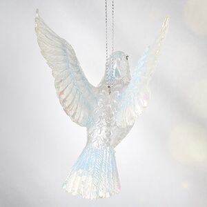 Почтовый голубь всегда ассоциируется у нас с каким-то загадочным посланием! Эта новогодняя игрушка тоже окажется в вашем доме не просто так. Глядя на то, как перламутровое украшение сияет на пушистых хвойных веточках, вы непременно почувствуете, что чудеса существуют, более того - они уже происходят в вашей комнате. Елочная игрушка придаст праздничному образу пушистой лесной гостьи легкости и воздушности.