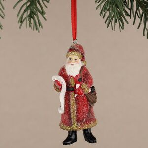 Стоит ли напоминать, что Новый год невозможен без его главного героя – Дед Мороза (или Санты Клауса). Этот умилительный старичок должен обязательно появиться в каждом доме, например в виде яркого, блестящего, нарядного елочного украшения! Подвеска задекорирована мерцающими блестками и мелким прозрачным бисером, что делает ее еще более ослепительной! Дедушка одет в красную длинную шубу и занят очень важным делом: составляет список детишек, к которым он придет в гости в эти праздники. Пусть в этом длинном списке окажется и ваш малыш, он будет очень рад!