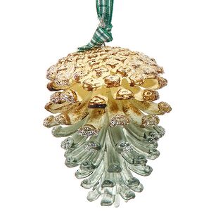 Новогодняя игрушка Шишка - Menthol Crystal могла вырасти только на праздничной елке. Золотистая верхушка, плавно переходящая в ментоловый оттенок, пышность формы и капелька блеска - все в этой елочной шишке говорит о ее сказочном происхождении!