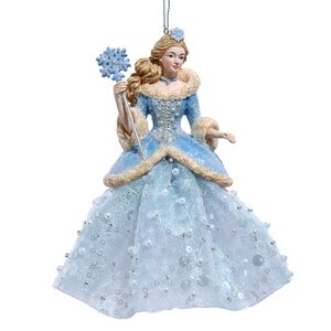 Как же легко оказаться во власти Снежной Королевы, елочного украшения от Kurts Adler! Стоит только прикоснуться к снежному скипетру, окинуть взглядом расшитый бусинами пышный подол, всмотреться в царственный взгляд синих глаз, как тут же оказываешься в северных угодьях холодной властительницы снегов! Повесьте елочную игрушку Снежную Королеву на ветку деревца - созданный голландскими мастерами образ потрясающе будет смотреться среди других игрушек в виде героев сказок.