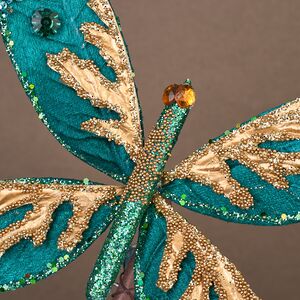 Один лишь взмах невесомых крыльев, и елочная игрушка на прищепке Бабочка Felinheli окажется на новогоднем деревце в окружении огоньков! В зеленой хвое ее бирюзовые крылья, облаченные в сияющую пыльцу и золотистый нектар, будут смотреться невероятно сказочно! Елочная игрушка дополнена прищепкой - такой вариант крепления создаст впечатление, что крылатая красавица сама присела на пушистый лапник деревца.