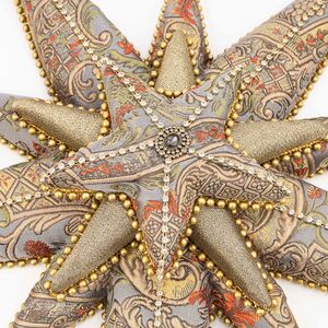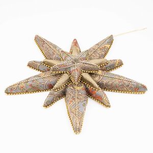 Новогоднее украшение для потолка Meltina Barga клятвенно обещает, что отныне все ваши праздники будут проходить под счастливой звездой! Облик лучистой красавицы выдержан в мягких оттенках серого перламутра, коралла и золота, прихотливо смешивающихся друг с другом, а крохотные бусины, что разбегаются по граням подвесной Звезды, добавляют ее облику шика.