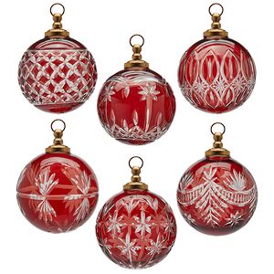 Флористические мотивы, причудливые орнаменты и изящные линии, будто бы выведенные не краской, а морозным инеем - какая же красота обосновалась на багряных стеклышках елочных игрушек Noventa di Piave! Зеленой красавице предстоит нелегкая задача - решить, каких же из ее многочисленных веток коснется эта зимняя симфония узоров, стекла и рождественского румянца!