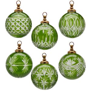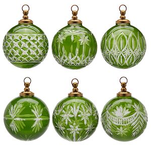 Флористические мотивы, причудливые орнаменты и изящные линии, будто бы выведенные не краской, а морозным инеем - какая же красота обосновалась на травянисто-зеленых стеклышках елочных игрушек Noventa di Piave! Зеленой красавице предстоит нелегкая задача - решить, каких же из ее многочисленных веток коснется эта нежная симфония узоров, стекла и луговой зелени!