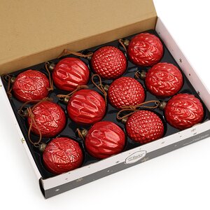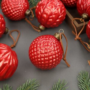Новогодние стеклянные шары Modern Love хранят маленький секрет. Смотришь на них издалека - радуют взгляд сочным алым цветом. Шагнешь ближе - и по рельефным бокам разбегаются солнечные блики, весело приплясывая на острых гранях и выпуклых чешуйках. О, это вы еще не видели, как волшебно набор елочных шаров смотрится в свете гирлянд, когда другие огни в комнате потушены, а за окошком кружит зимняя вьюга!