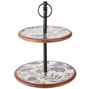 Фруктовница двухярусная Blue Fiori di Mango 43 см, дерево