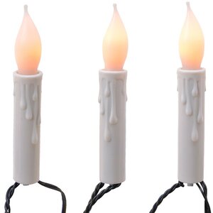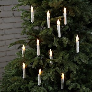Снабженные миниатюрными лампочками свечи для елки способны воссоздавать особенное, ни с чем несравнимое, очарование настоящего огня, но при этом не боятся контакта с хвоей. Зеленый шнур гирлянды ловко маскируется среди еловых лап, тонкие свечи на прищепке, украшенные имитацией капелек воска, надежно закрепляются на ветках… Осталось подключить их к сети и наслаждаться сиянием разбежавшихся по деревцу огоньков.