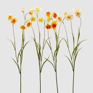 Искусственная ветка Нарцисс идеально подходит для создания весенне-летнего декора интерьера и композиций, ведь их нежные лепестки, будто обласканные солнцем и игривым ветерком, воплощают тепло, уют и гармонию. Искусственные ветки цветов нарцисса привнесут душевный и трогательный акцент в пространство, поэтому можно смело поставить их в вазу или использовать для других творческих идей!