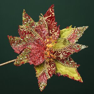 Пуансеттия - первый вестник Нового года и Рождества, который расцветает на елках и хвойных венках в канун праздника несмотря на снег за окном! Добавьте в оформление ели или интерьер эту цветочную симфонию празднества, используя искусственную пуансеттию Донна в декоре. Пышный раскрытый бутон цветка в зелено-красном оттенке отлично сочетается с хвоей, огнями гирлянд и другими новогодними украшениями.