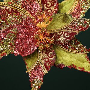 Искусственная пуансеттия - это декоративный цветок на клипсе с множеством вариантов применения. Этот аксессуар создан для того, чтобы наполнить ваше жилище праздничным настроением! Прикрепите новогодний цветок на елку - он станет как стильным украшением ветвей, так и оригинальной альтернативой макушке, им можно заменить классическую пятиконечную звезду, придав тем самым вашей елочке особый шик. Хвойные гирлянды, венки, дизайнерские композиции и букеты - искусственная пуансеттия везде будет смотреться замечательно!