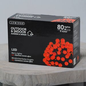 Электрогирлянда уличная "Маленькие шарики ВИШЕНКИ", 80 КРАСНЫХ LED ламп, черный провод, контроллер (494674), ТМ Kaemingk.