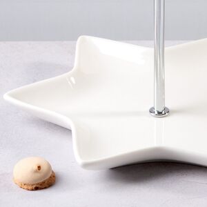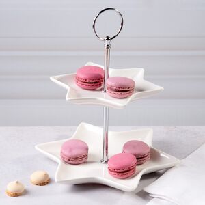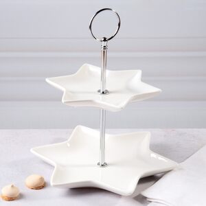 Этажерка для фруктов - практичный и стильный аксессуар, благодаря которому вы сможете интересно преподнести к столу различные вкусности. Две тарелочки, выполненные в форме звезд, в сочетании с блестящей металлической ручкой смотрятся очень утонченно и привнесут в интерьер сказочные нотки. Разместите на этажерке для сервировки легкие бутерброды и канапе, сочные фруктовые плоды, макаруны, орехи в шоколаде, разноцветные драже и прочие лакомства - красивая подача и аппетитные десерты поднимут вам настроение и позволят по-настоящему насладиться моментом.