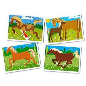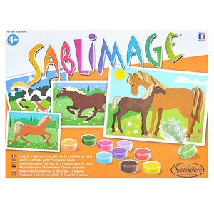Набор для создания картины из песка от известного французского бренда Sentosphere прекрасно подойдет для ваших деток и поможет развить фантазию, усидчивость и внимательность. С помощью специального разноцветного песка, который очень приятно пересыпать в руках, можно сделать потрясающие картины с изображениями разных лошадок. Это очень легко и просто! Для этого в наборе есть 4 картинки с клейким слоем и 16 пакетиков с песочком разного цвета, останется только подключить воображение и раскрасить рисунки, насыпав нужный цвет песка.
